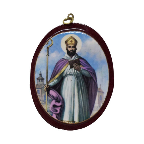 Cuadro de madera ovalado de San Cipriano, con poliéster.