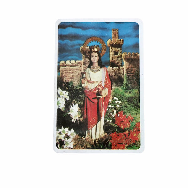Estampa de plástico flexible, color blanco, con oración en la parte posterior.