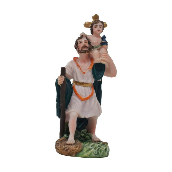 Imagen de bulto de San Cristóbal de 10 cm de alto, elaborada en resina.